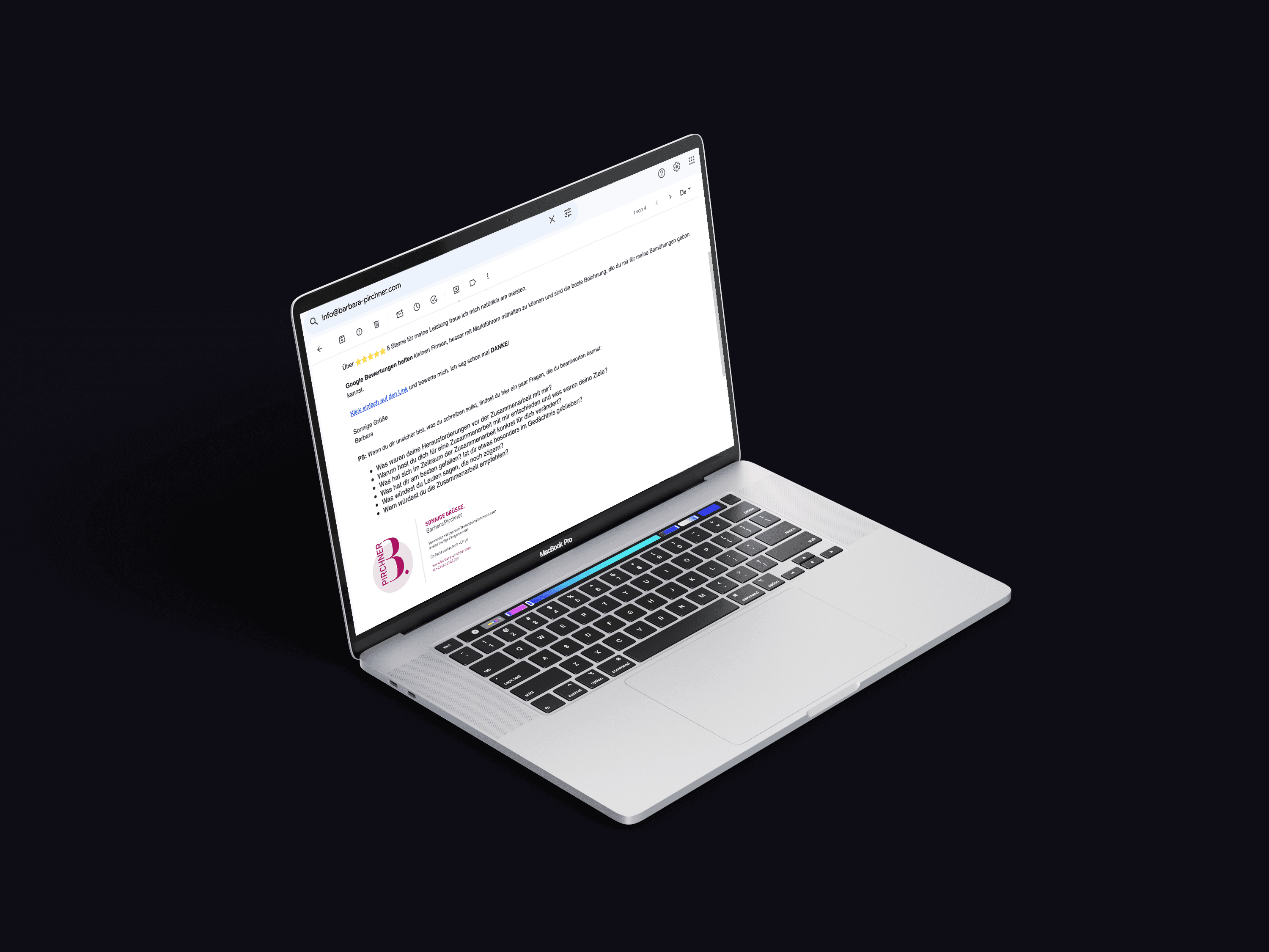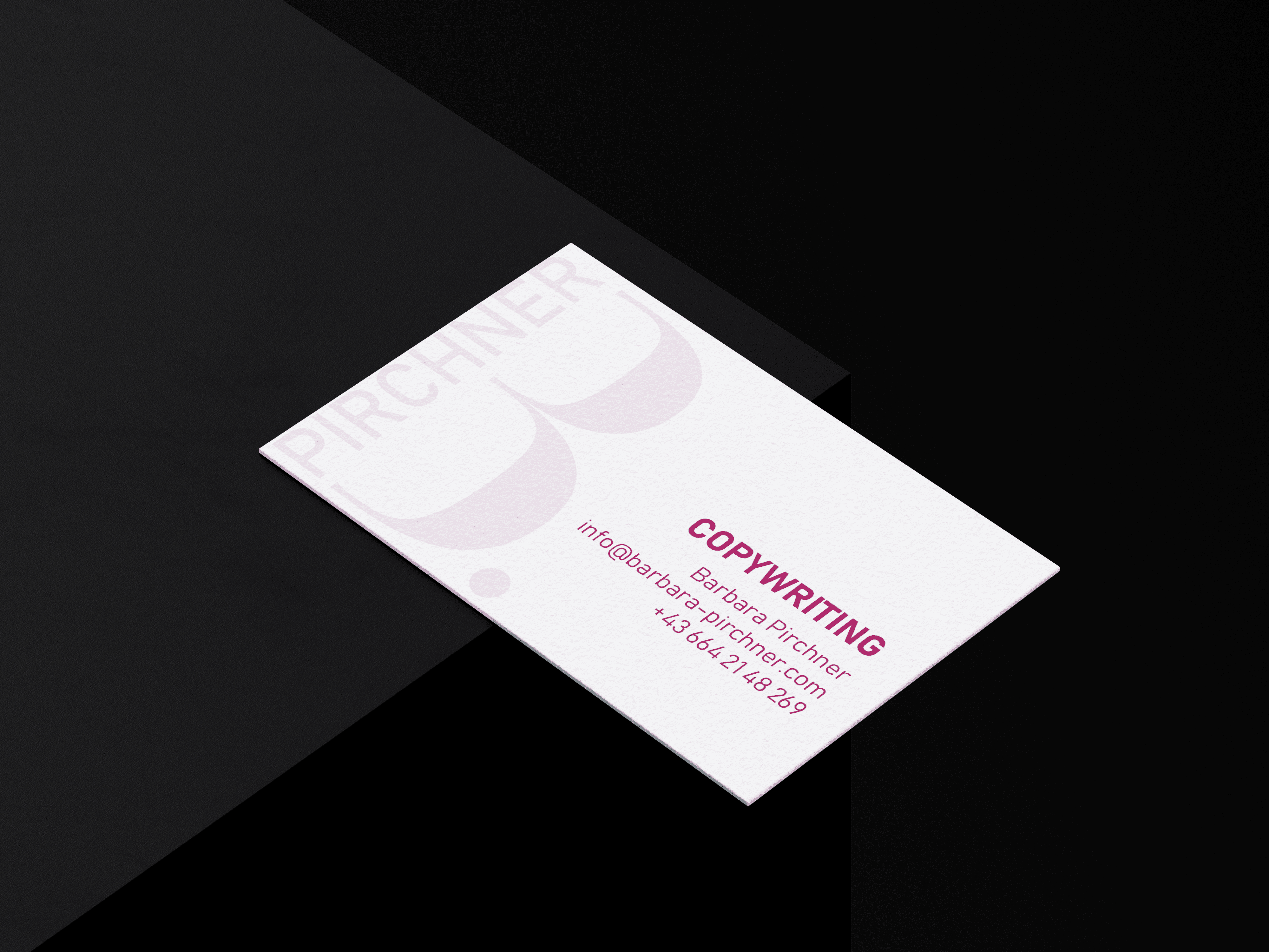 Für die Copywriterin Barbara Pirchner entstand ein Brand Design, das Sprache sichtbar macht und Persönlichkeit transportiert. Ziel war es, ein Erscheinungsbild zu entwickeln, das ihre Stärke – wirkungsvolle, lebendige Texte – visuell unterstützt und verstärkt. Unter dem Motto Doch starke Worte allein sind nur ein Teil der Wirkung. In Kombination mit einem maßgeschneiderten Corporate Design entsteht eine Markenpräsenz, die nicht nur überzeugt, sondern im Gedächtnis bleibt. Das visuelle Konzept verbindet Klarheit mit Ausdrucksstärke. Eine prägnante Typografie trifft auf gezielte Akzente und eine selbstbewusste Farbwelt, die Energie und Leidenschaft transportiert. Die Gestaltung spiegelt damit genau das wider, was Barbara mit ihren Texten bewirkt: Aufmerksamkeit, Emotion und Bewegung.